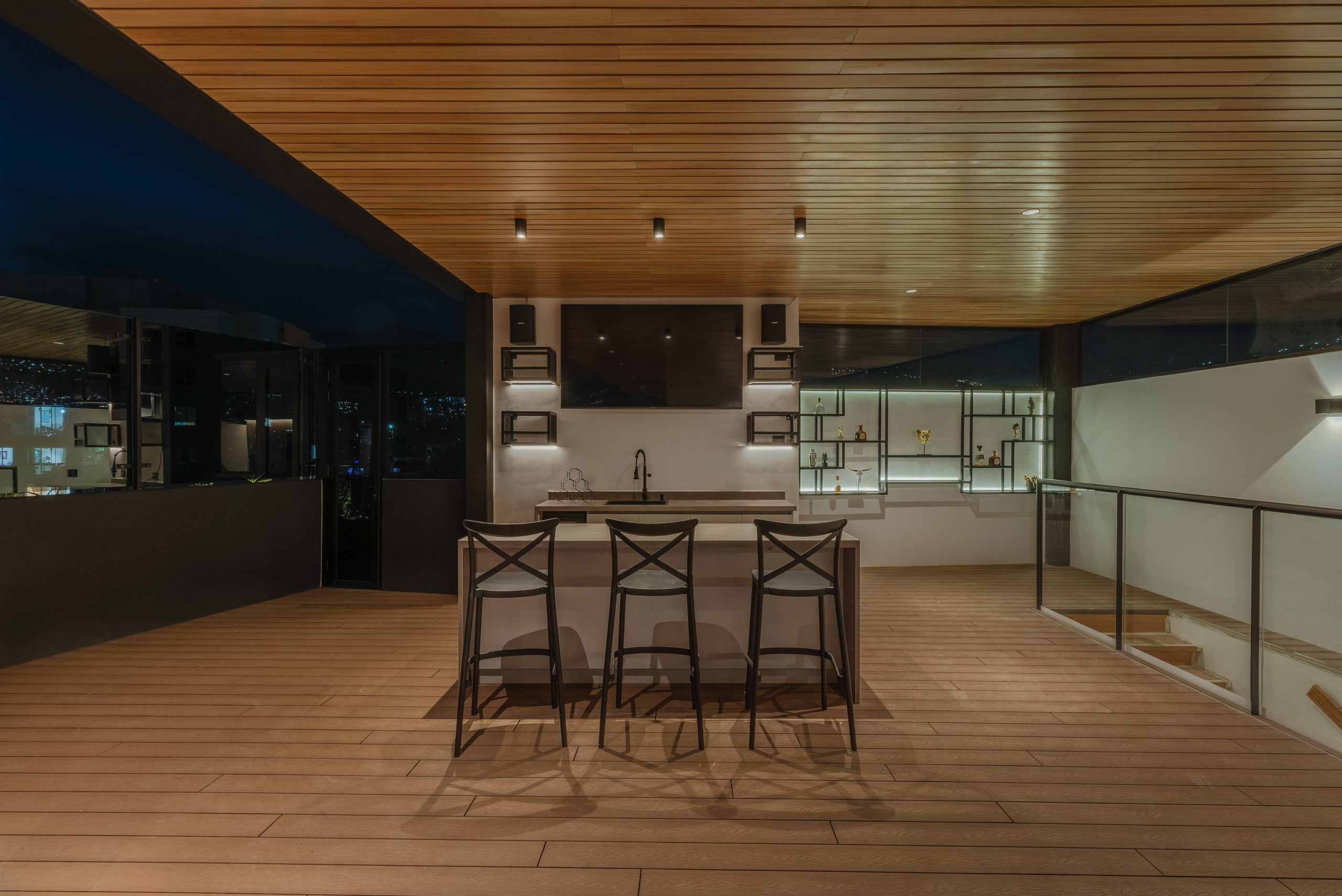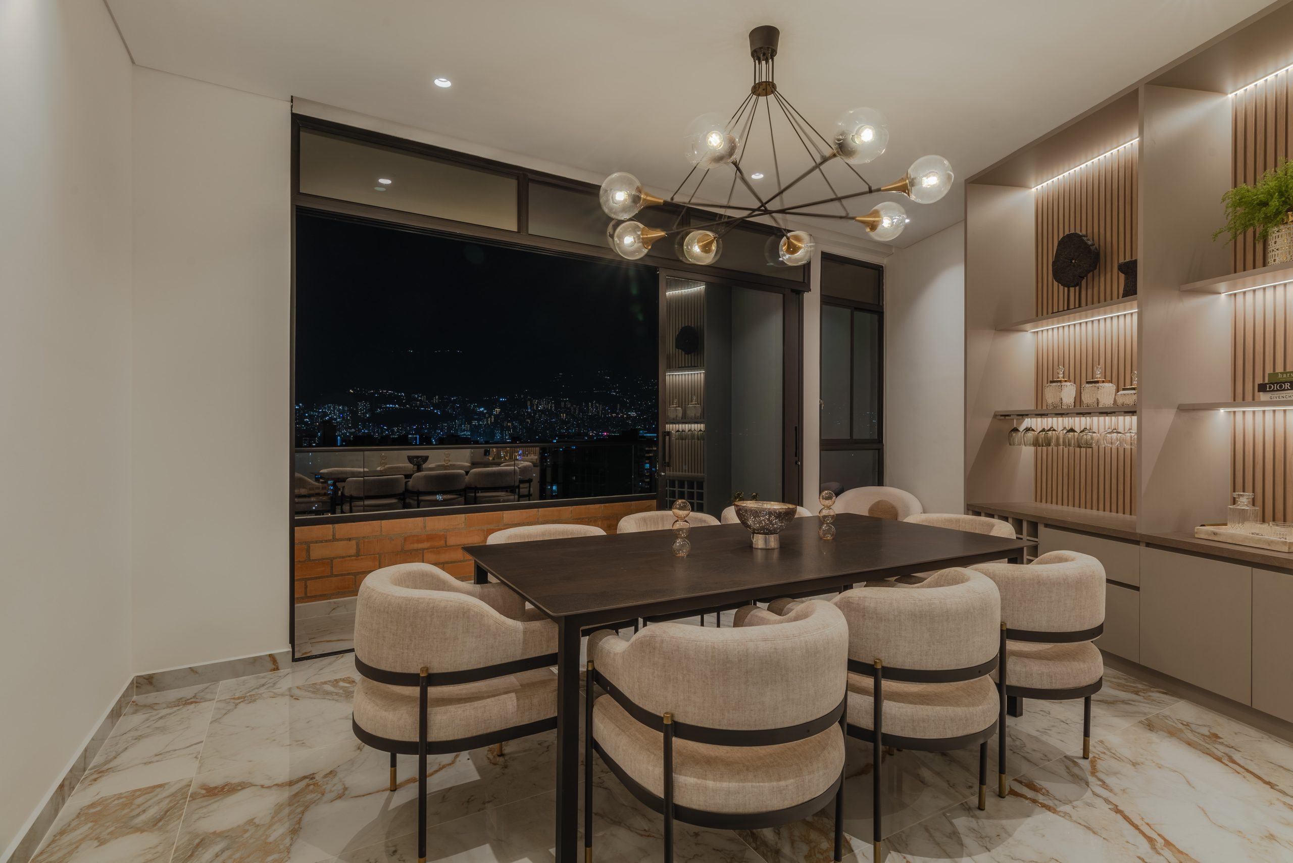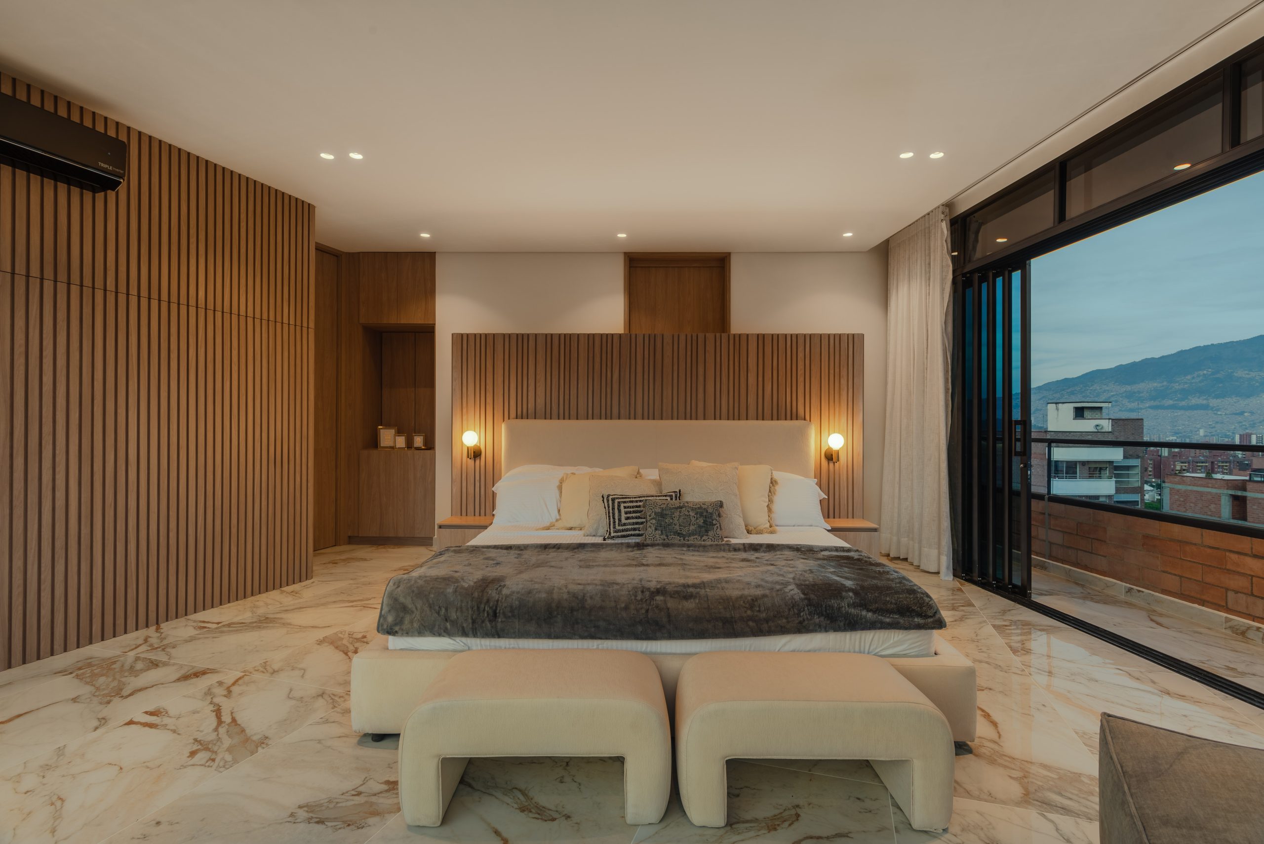 Un oasis de 600 m2 en medio de la ciudad de Medellín, con vistas 360° del Valle de Aburrá,donde materiales como el mármol, la madera cálida, el acero y el concreto envuelven espacios dándole una sensación de hogar y lujo al mismo tiempo.