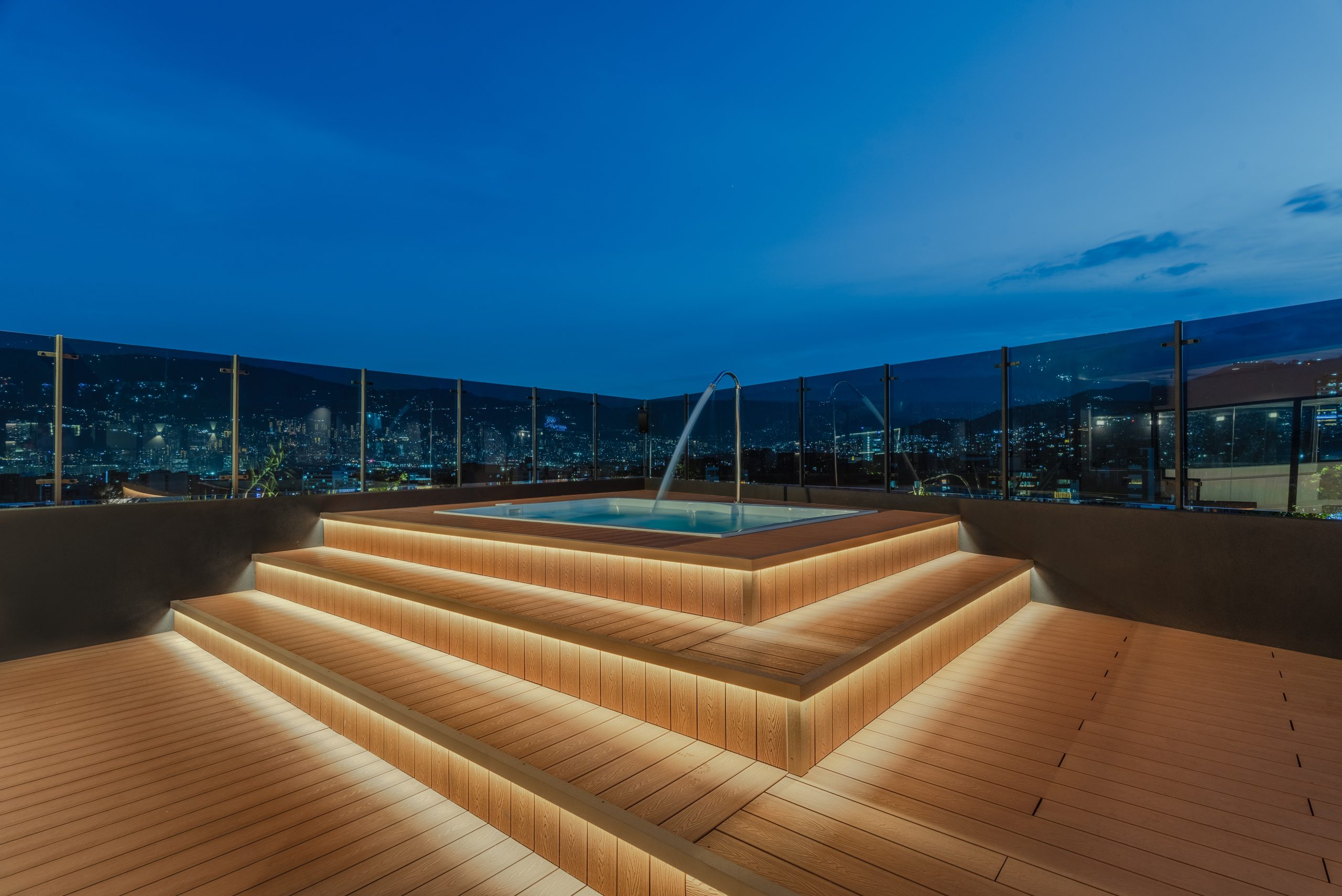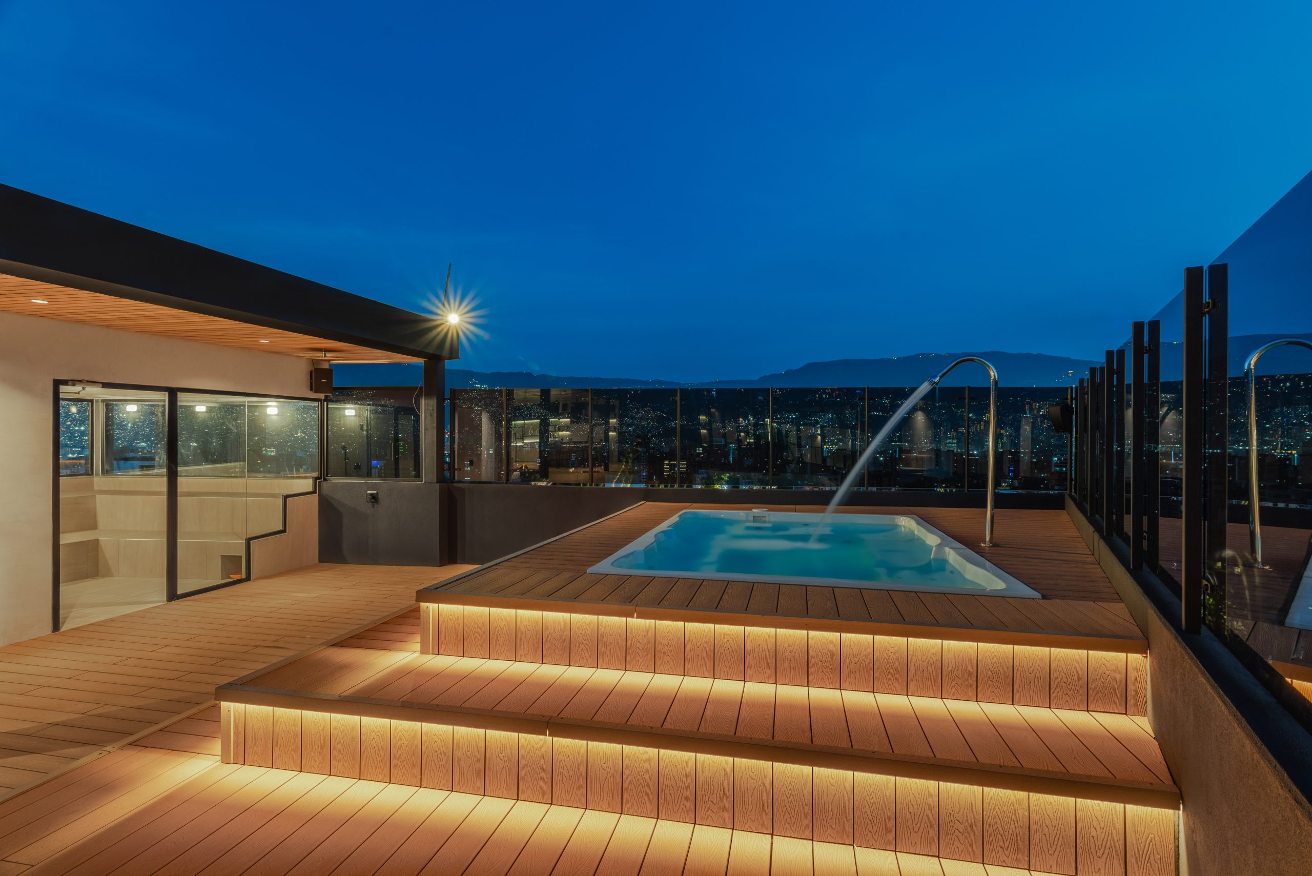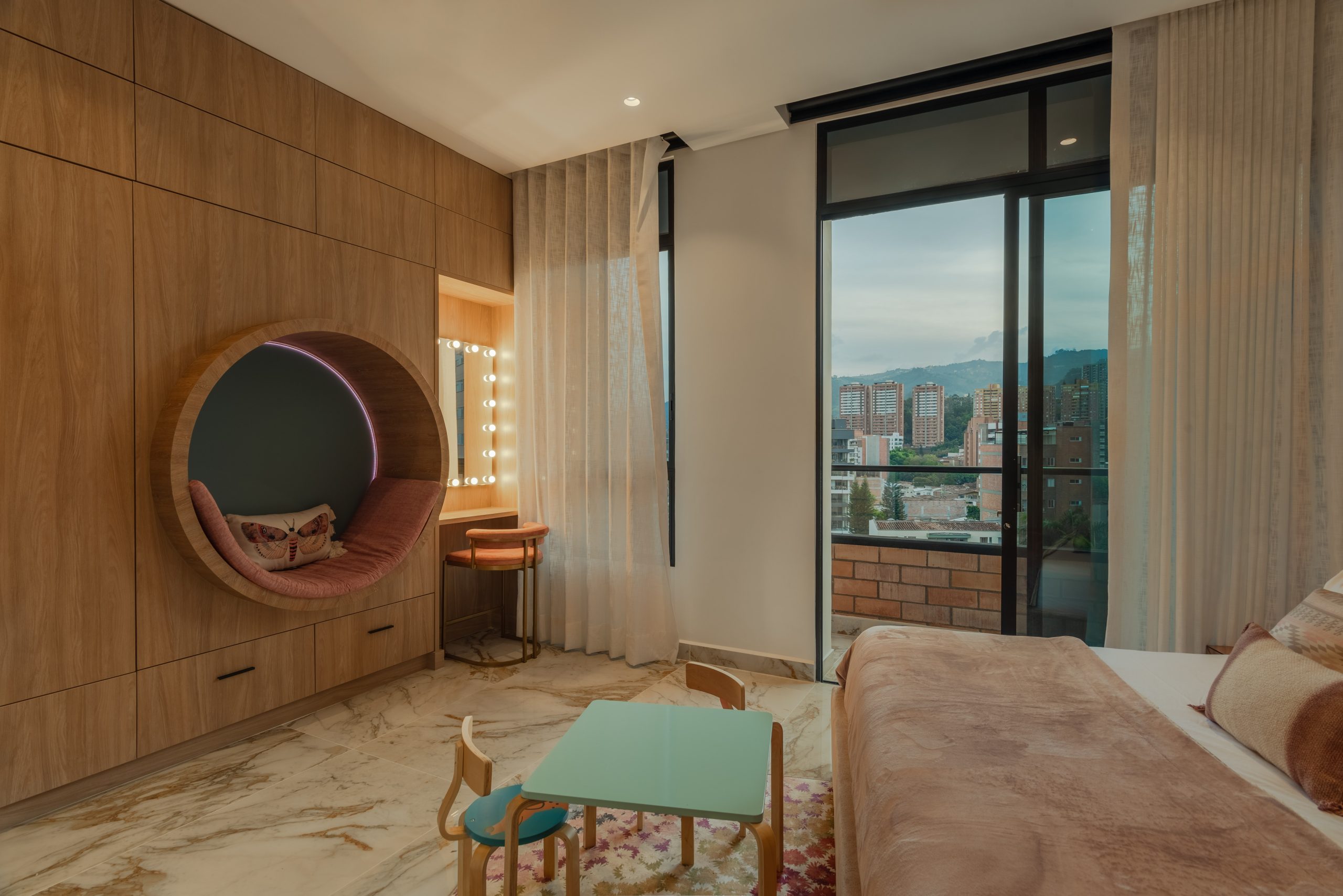 Un oasis de 600 m2 en medio de la ciudad de Medellín, con vistas 360° del Valle de Aburrá,donde materiales como el mármol, la madera cálida, el acero y el concreto envuelven espacios dándole una sensación de hogar y lujo al mismo tiempo.